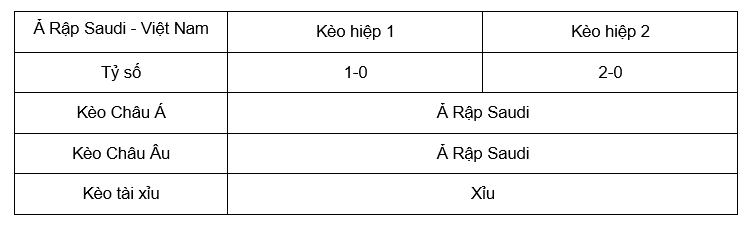 Tỷ lệ kèo Ả Rập Saudi – Việt Nam