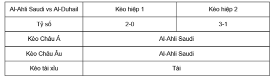 Tỷ lệ kèo Al-Ahli Saudi – Al-Duhail