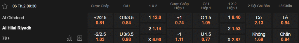 Tỷ lệ kèo Al Akhdoud Club – Al Hilal