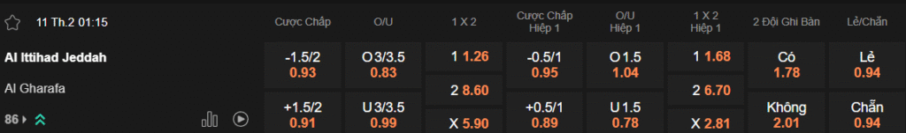 Tỷ lệ kèo Al lttihad – Al-Gharafa