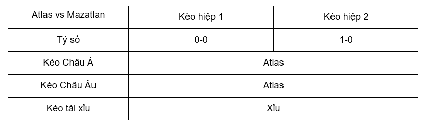 Tỷ lệ kèo Atlas – Mazatlan