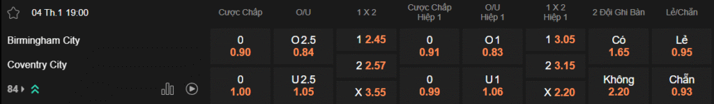 Tỷ lệ kèo Birmingham – Coventry