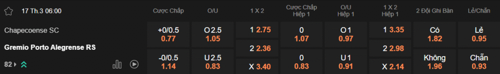Tỷ lệ kèo Chapecoense – Gremio