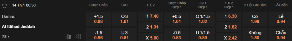 Tỷ lệ kèo Damac – Al Ittihad