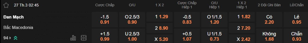 Tỷ lệ kèo Đan Mạch – Bắc Macedonia