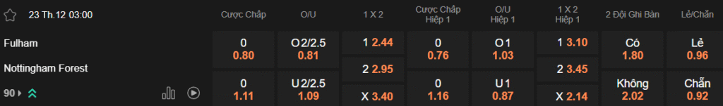 Kèo đấu giữa Fulham – Nottm Forest được các chuyên gia phân tích trong kèo thơm lúc 03h00 ngày 23/12. Chúc các bạn đặt kèo thành công.