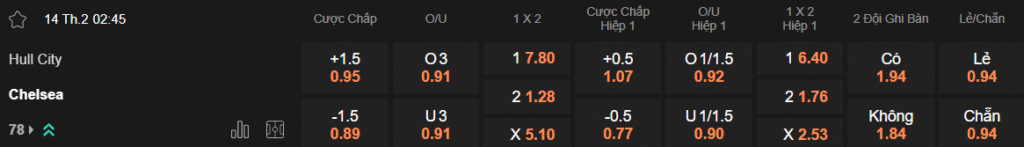Tỷ lệ kèo Hull City – Chelsea