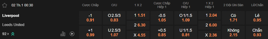 Tỷ lệ kèo Liverpool – Leeds