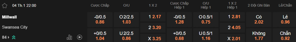 Tỷ lệ kèo Millwall – Swansea