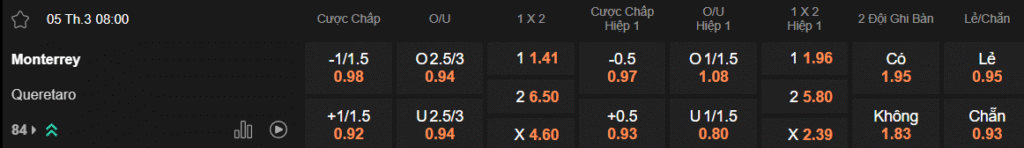 Ở kèo châu Âu, dù Monterrey đang không có phong độ tốt nhất nhưng đẳng cấp và lợi thế sân nhà vẫn giúp họ được đánh giá cao hơn rất nhiều. Tỷ lệ chấp bóng sâu cho thấy giới chuyên môn tin tưởng vào một chiến thắng cách biệt cho đội chủ sân BBVA. Với việc chỉ phải đối đầu với một Queretaro đang đứng cuối bảng xếp hạng, đây là cơ hội không thể tốt hơn để Monterrey cắt đứt mạch trận thất vọng. Một chiến thắng nhẹ nhàng 2-0 không chỉ giúp họ có thêm 3 điểm quan trọng mà còn là liều thuốc tinh thần quý giá trước khi bước vào giai đoạn khốc liệt của mùa giải.