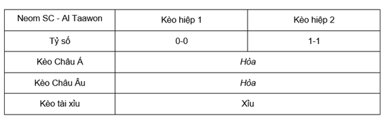 Tỷ lệ kèo Neom SC – Al Taawon