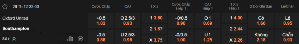 Tỷ lệ kèo Oxford – Southampton