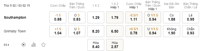 Tỷ lệ kèo Southampton vs Grimsby Town