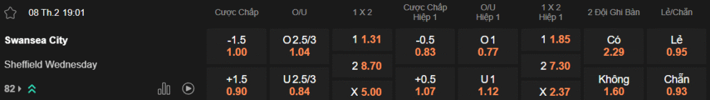 Tỷ lệ kèo Swansea – Sheff Wed
