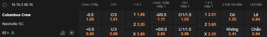 Tỷ lệ kèo Columbus – Nashville