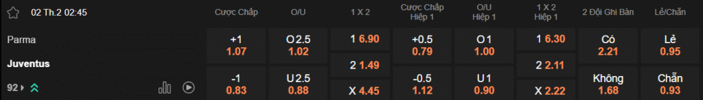 Tỷ lệ kèo Parma – Juventus