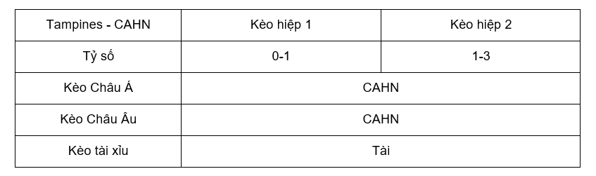 Tỷ lệ kèo Tampines – CAHN