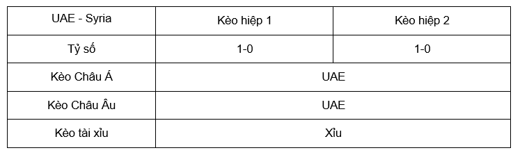 Tỷ lệ kèo UAE – Syria