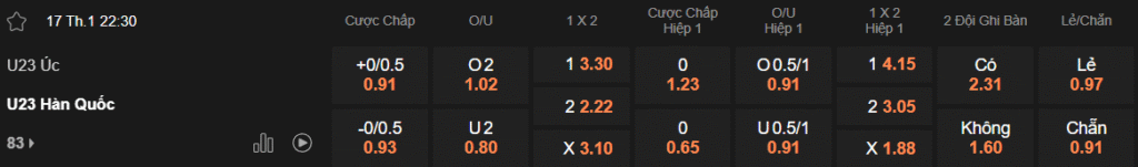 Tỷ lệ kèo Úc – Hàn Quốc